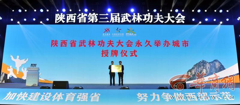 最激动人心的环节之一,是武林大会永久会址的授牌仪式。当省体育局副局长徐鹏将象征着荣誉与责任的“陕西省武林功夫大会永久举办城市”牌匾正式授予华阴市政府时,全场爆发出雷鸣般的掌声。这一举措标志着陕西武林大会正式扎根华阴,承载起传承与发扬的重任。